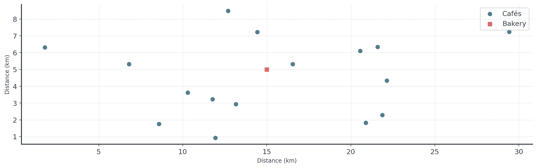 “Every morning at 5:00, our delivery van leaves with fresh bread for 16 cafés across the city. Our driver currently takes much too long using his ‘intuition’ for the route. The fuel costs are killing us, and worse, some cafés get their bread late.”