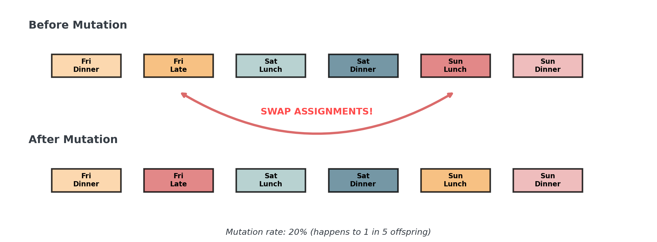 # Step 1: Try a random change (like swapping two shifts)