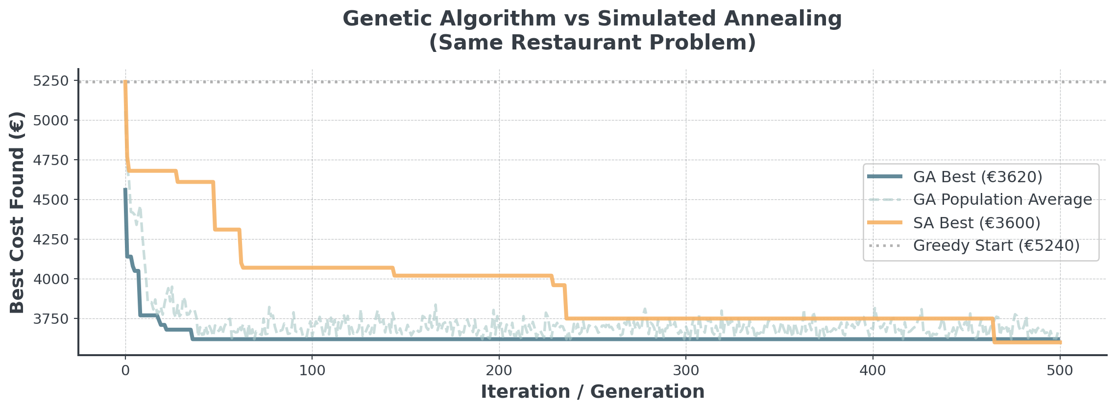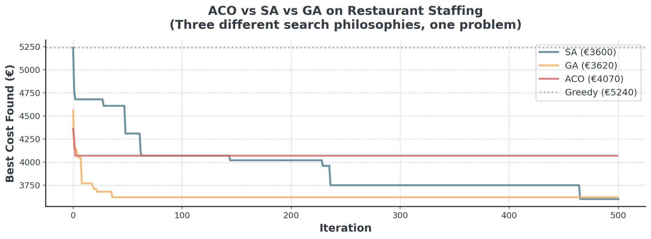 We forced a “Graph” algorithm onto a “Bin Packing” problem. SA and GA don’t care about geometry, so they adapted better!