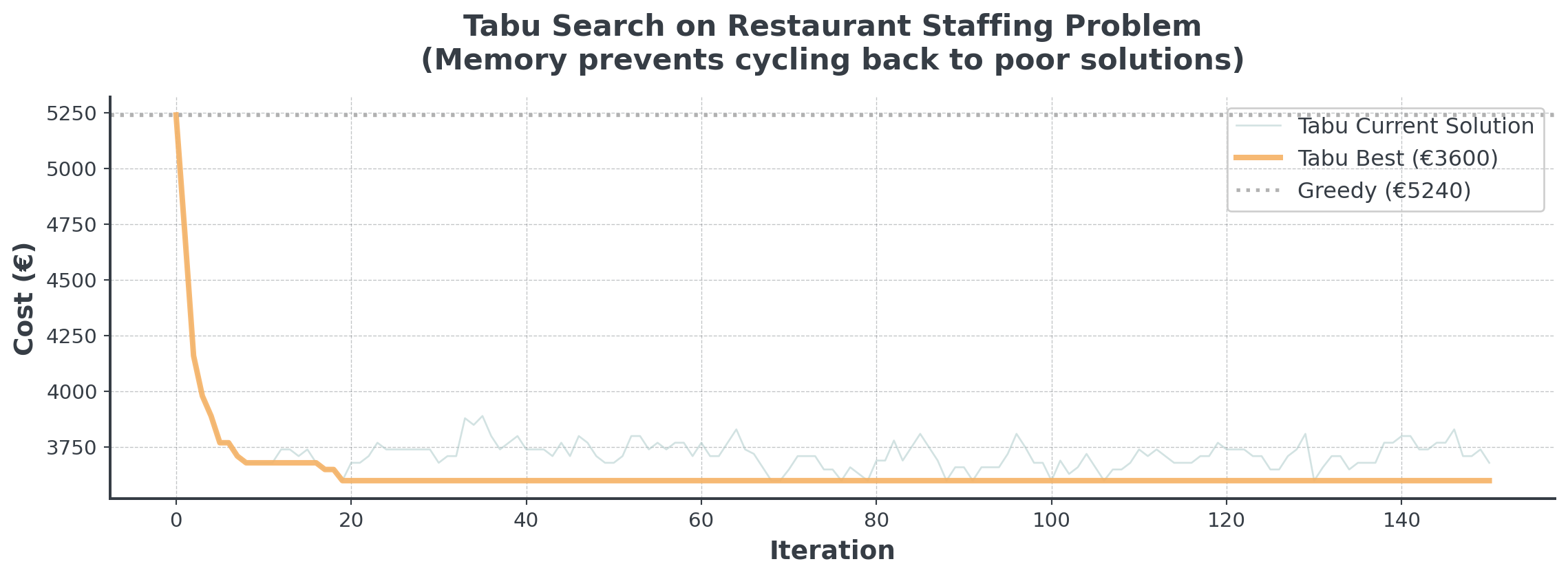 - Scheduling Problems → SA or Tabu (neighborhood swaps)