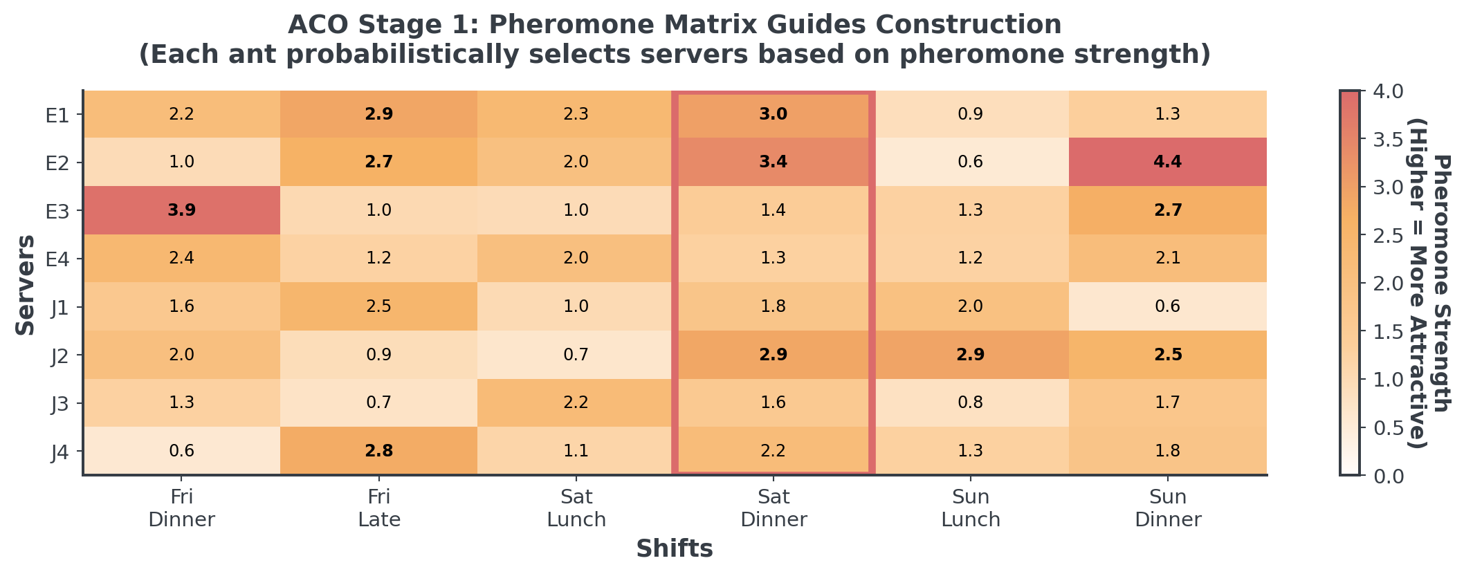 To build the initial pheromone matrix, each cell is initialized with a small positive value.