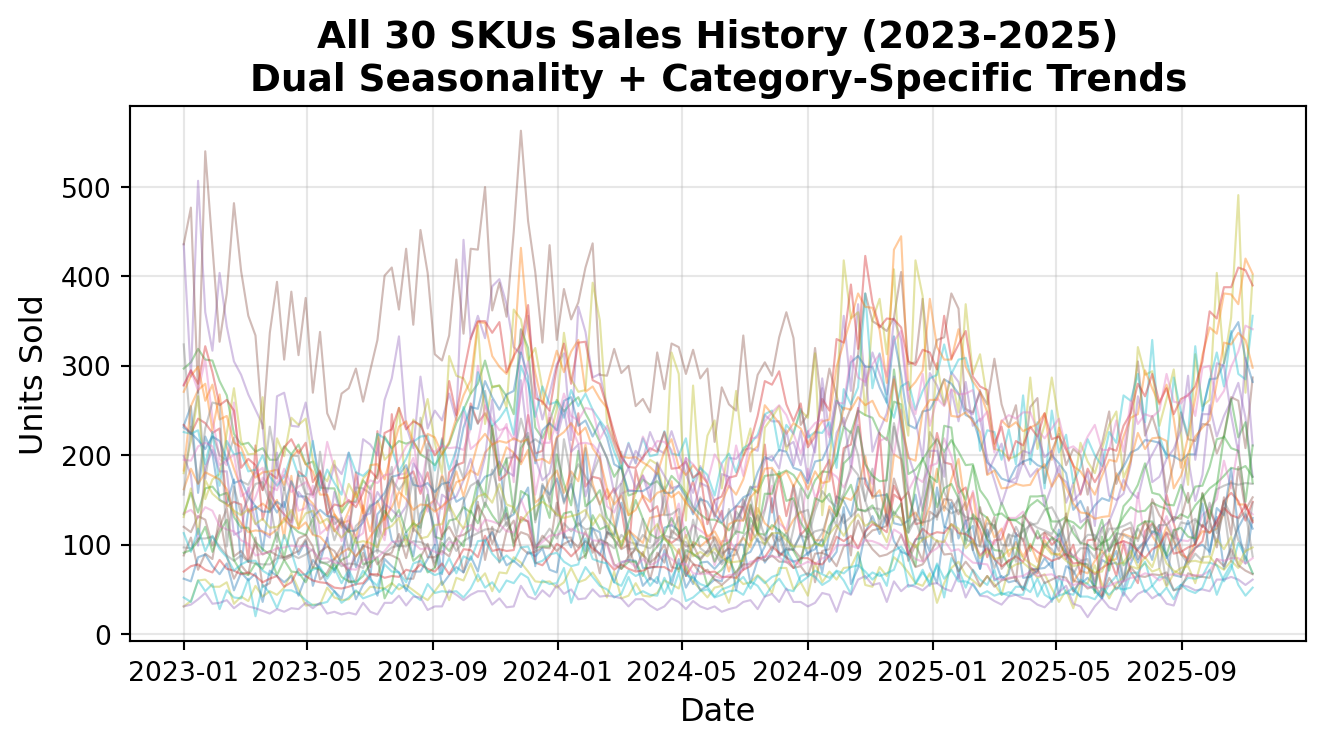 # Generate weekly sales from 2023-01-01 to 2025-11-15 (almost 3 years)