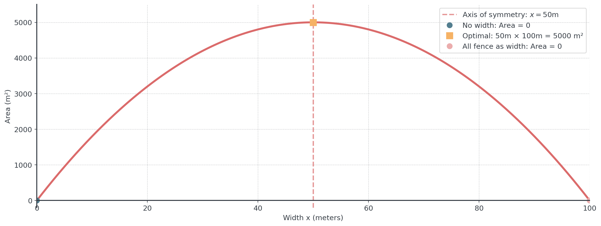 Symmetric design: Too narrow OR too wide both reduce area - optimal is exactly in the middle!