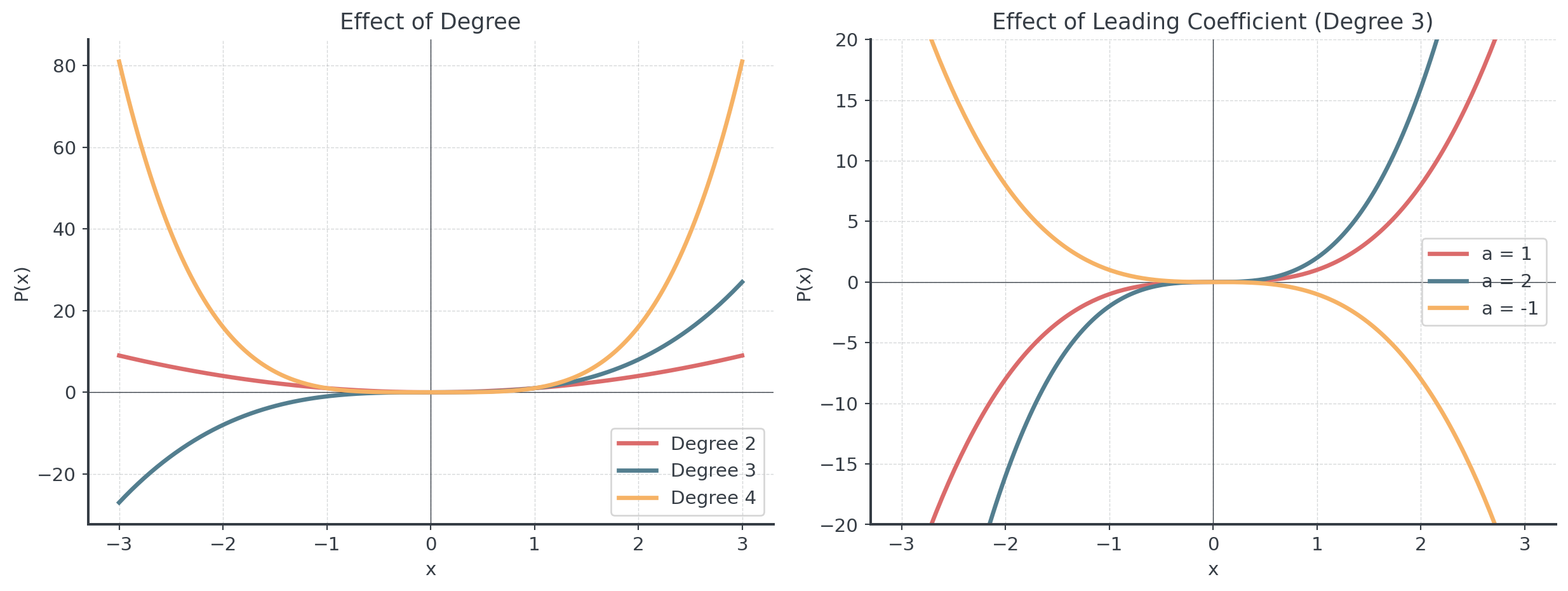 Is \(f(x) = \frac{1}{x} + x^2\) a polynomial? No! The term \(\frac{1}{x} = x^{-1}\) has a negative exponent.