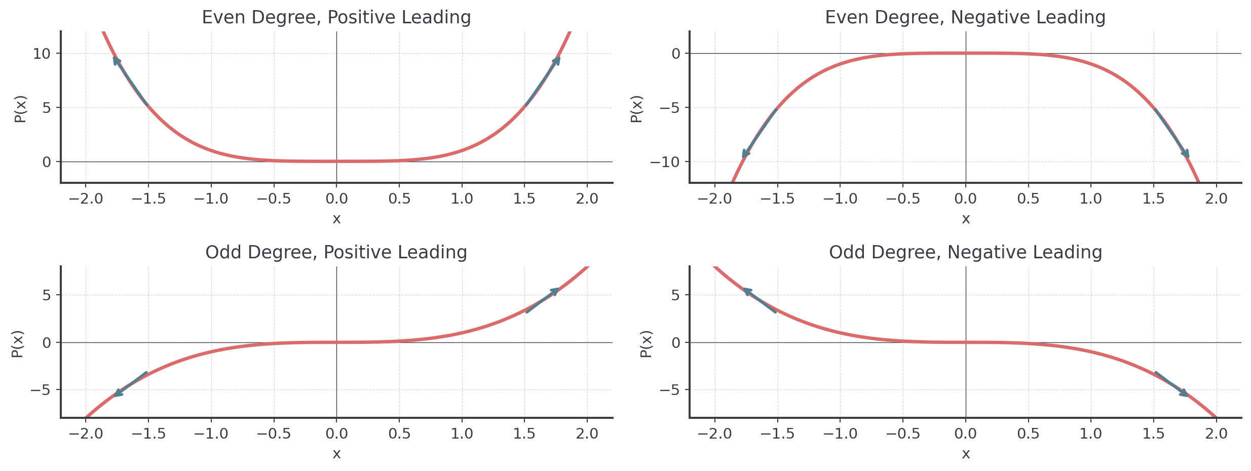 - Analyze the polynomial \(P(x) = -x^4 + 5x^2 - 4\):