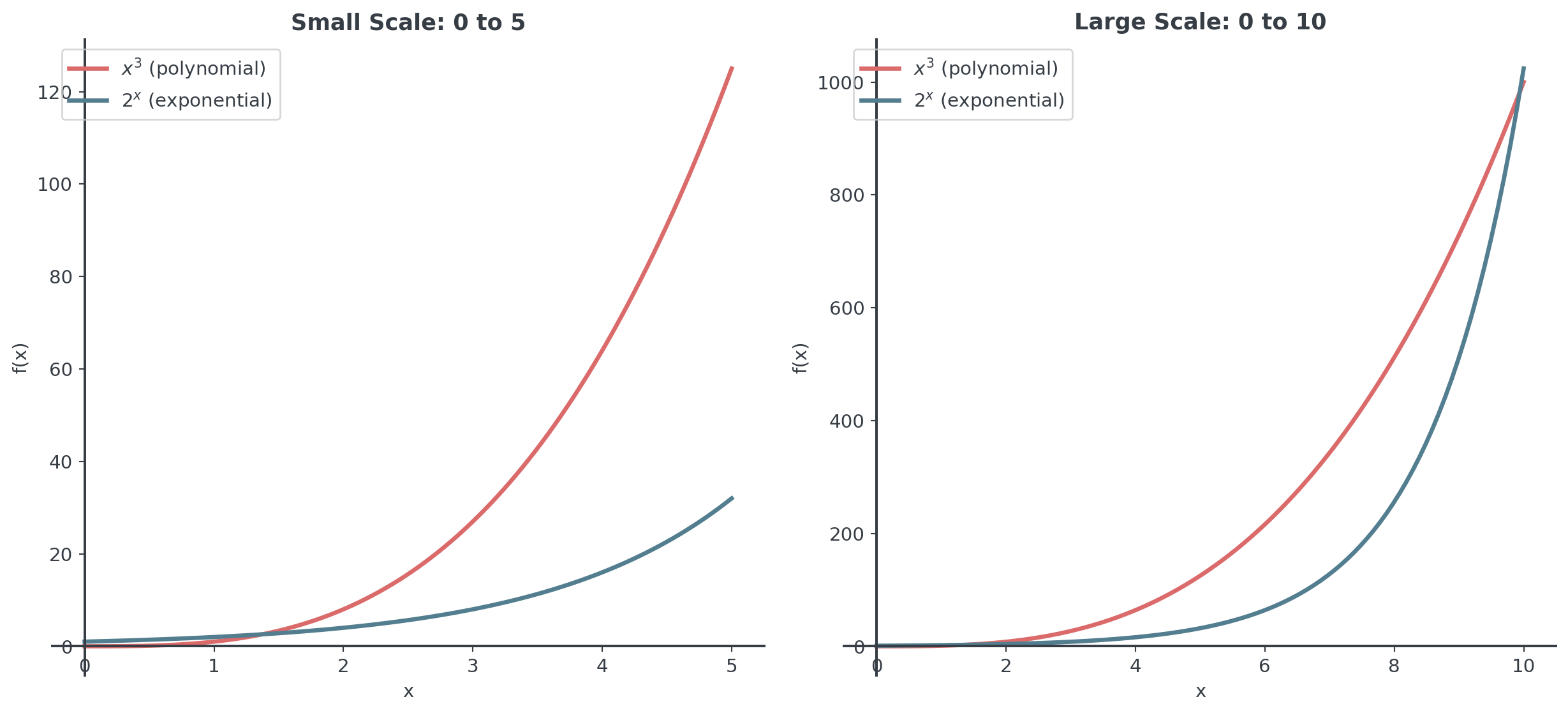 - Compare exponential vs. polynomial growth rates