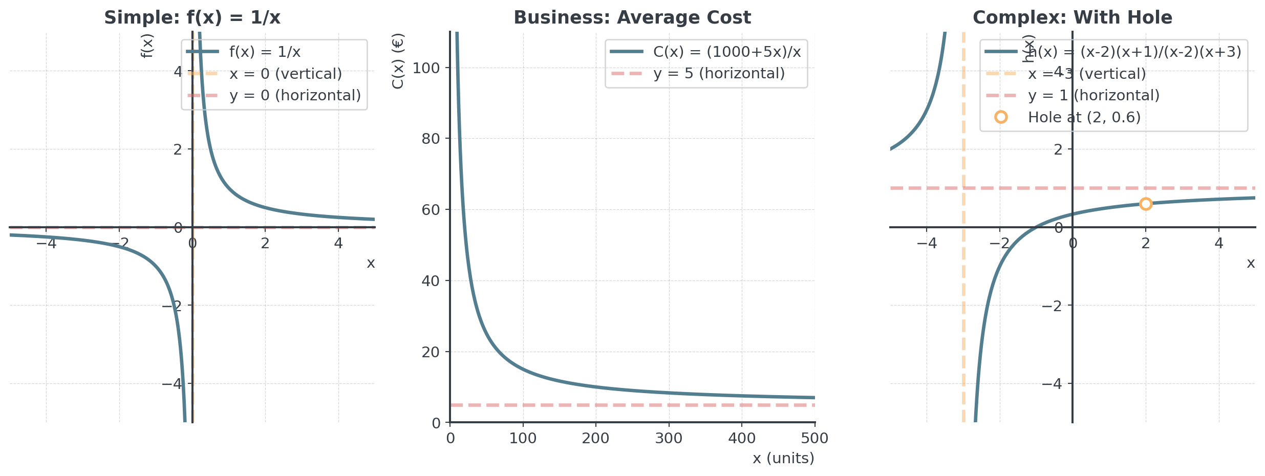 - Example: \(f(x) = \frac{1}{x}\) has vertical asymptote at \(x = 0\)