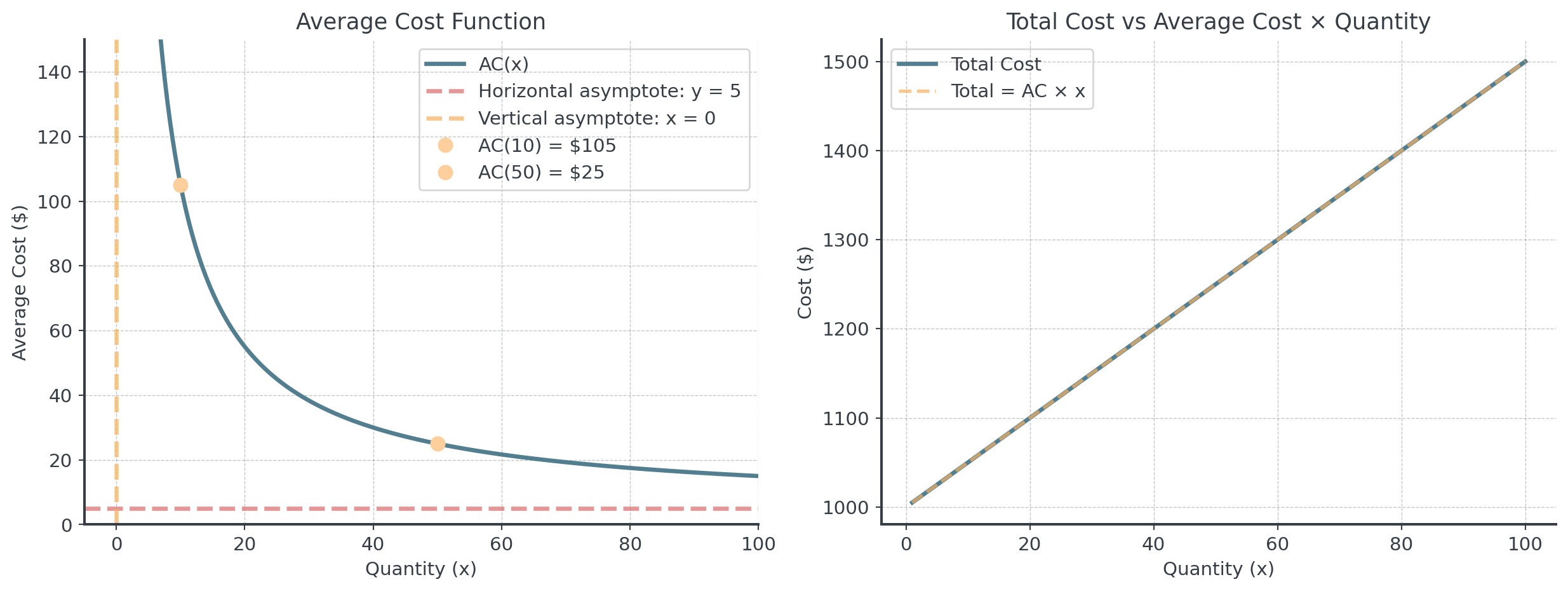 - \(AC(x) = \frac{2000 + 15x + 0.01x^2}{x}\)
