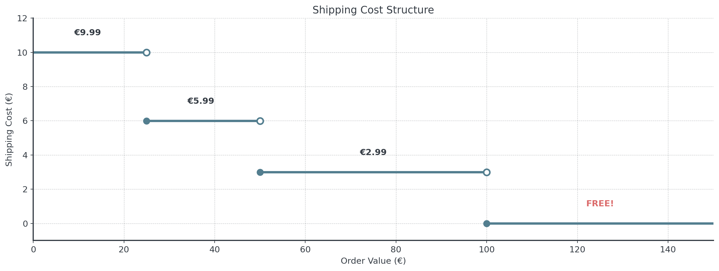 - Medium batches (500-2000 units): \(C_2(x) = 15x + 750\)