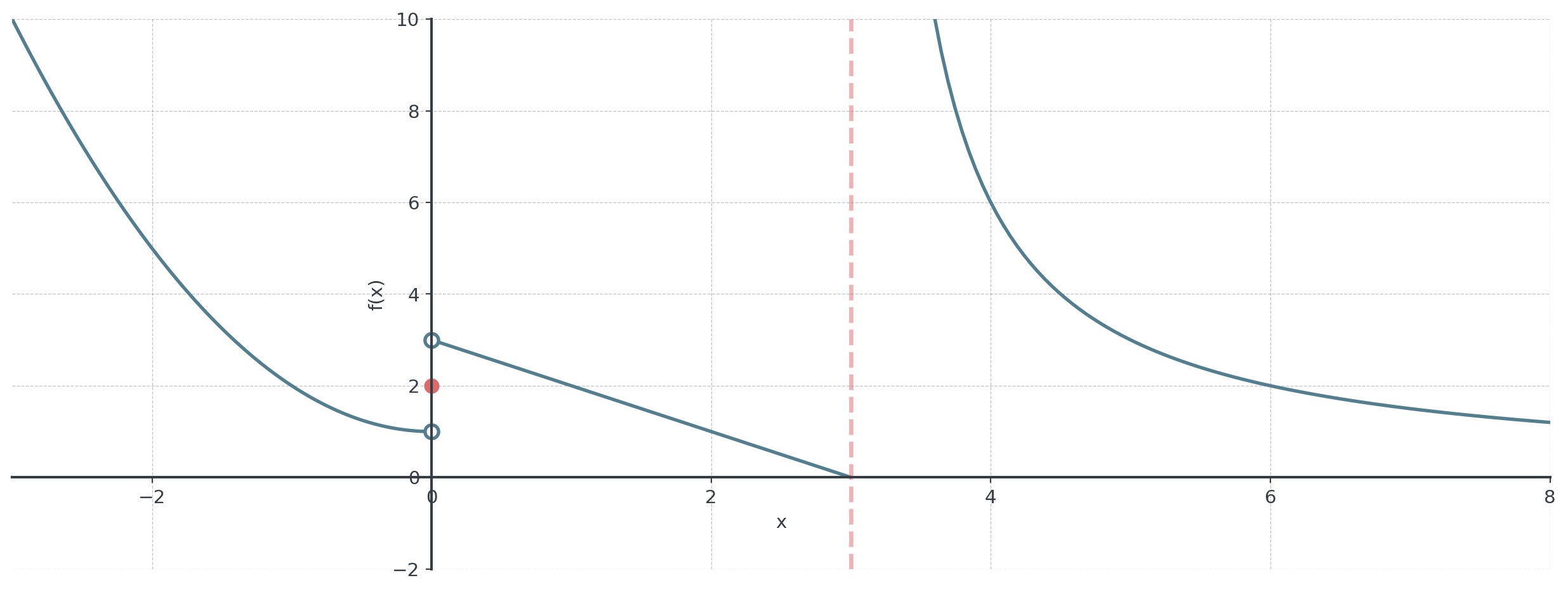 - Function 2: \(\lim_{x \to 2^-} f(x)\) and \(\lim_{x \to 2^+} f(x)\)