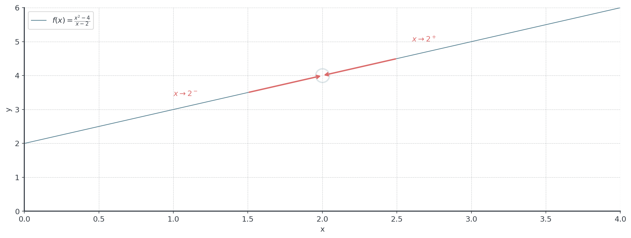 - Right-hand limit: \(\lim_{x \to a^+} f(x)\) (approaching from the right)