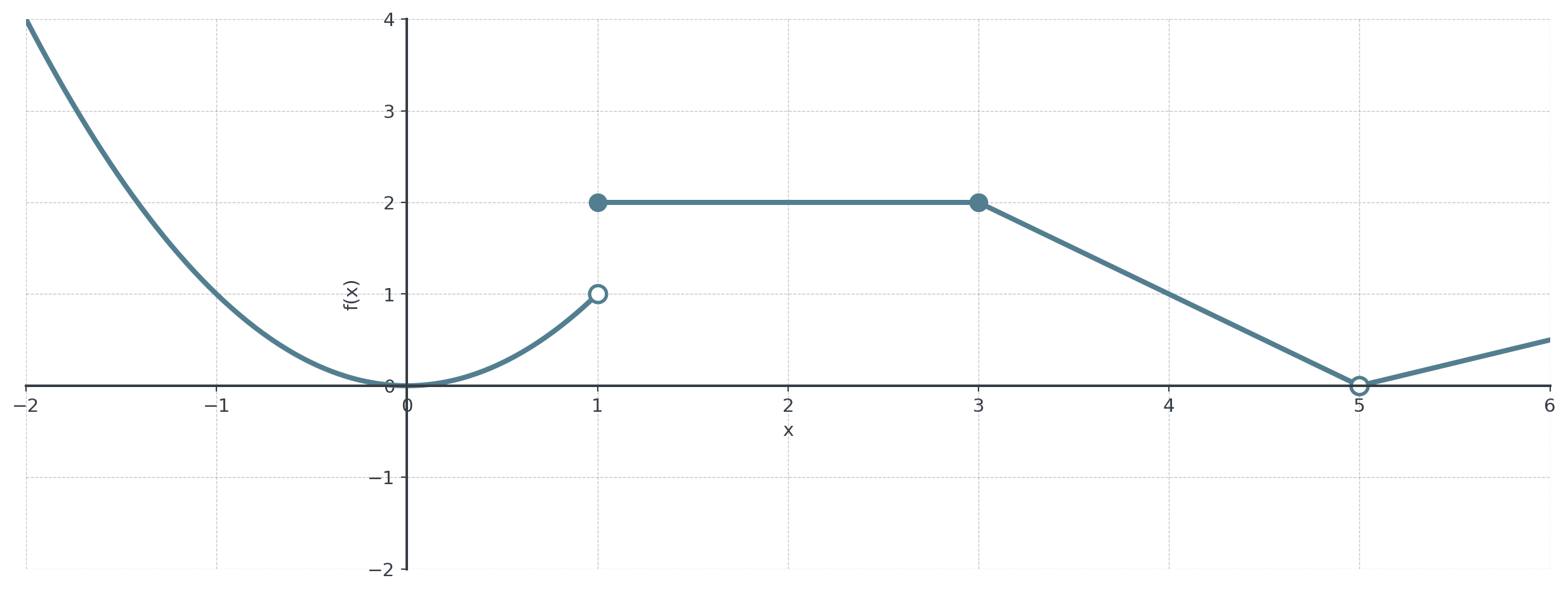 - \(\lim_{x \to 5^-} f(x)\) and \(\lim_{x \to 5^+} f(x)\)