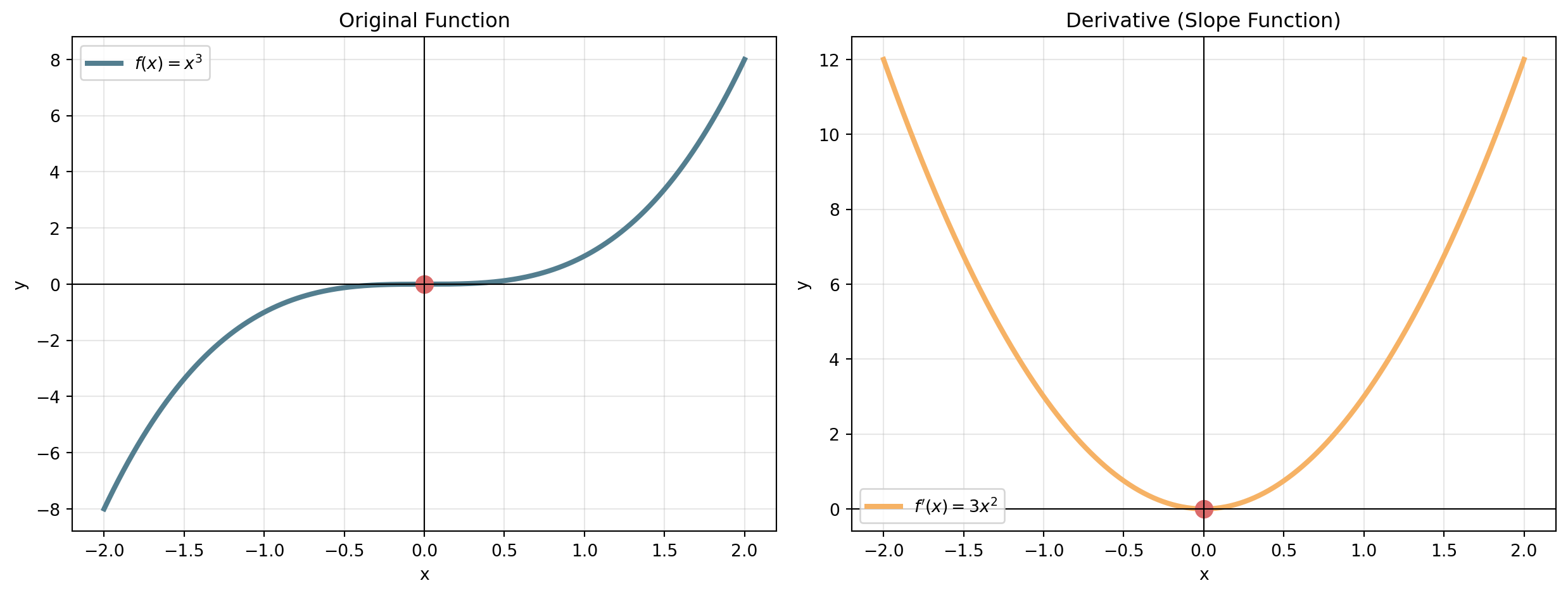 - Sensitivity analysis: \(f'(a)\) shows how sensitive output is to input changes