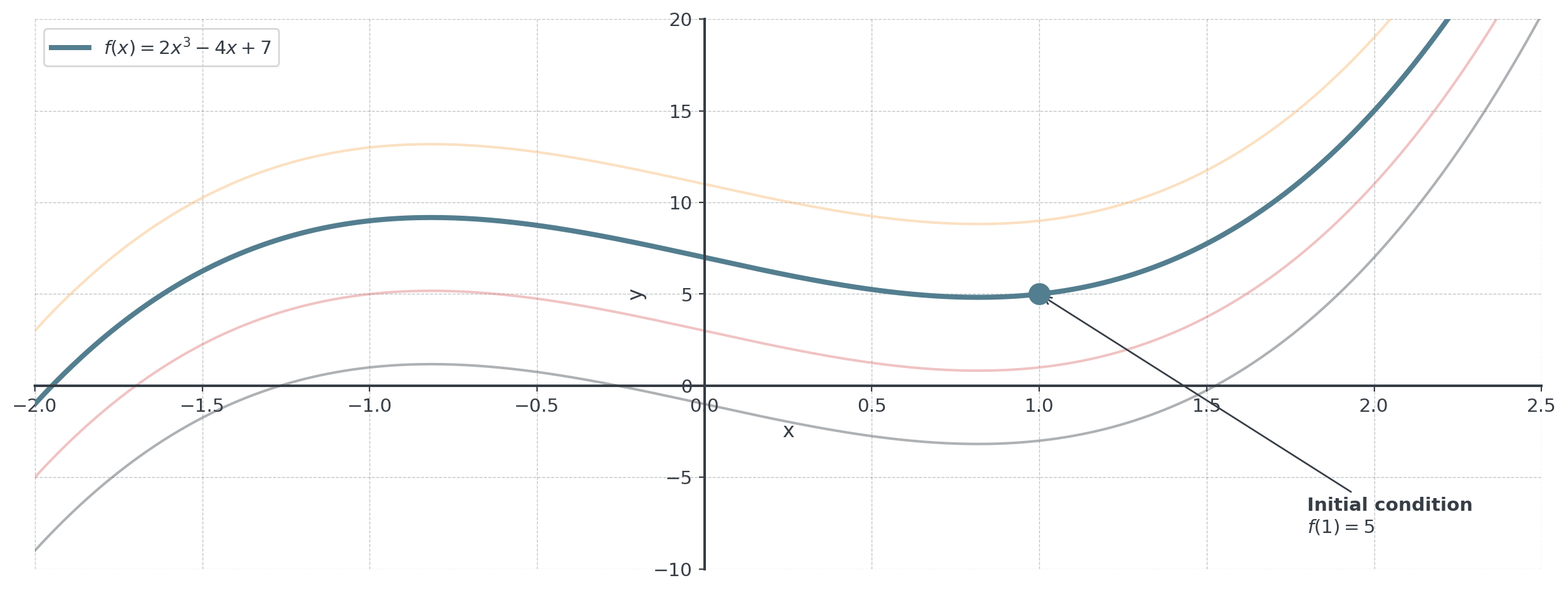 - Initial conditions: Fix the value of \(C\) to find a specific function