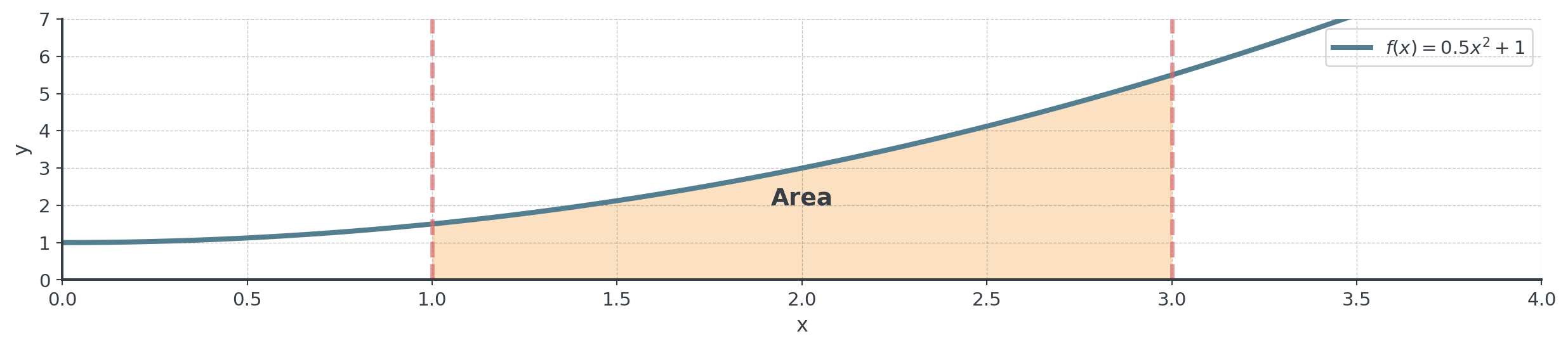\[\text{Area} = \int_a^b f(x) \, dx\]