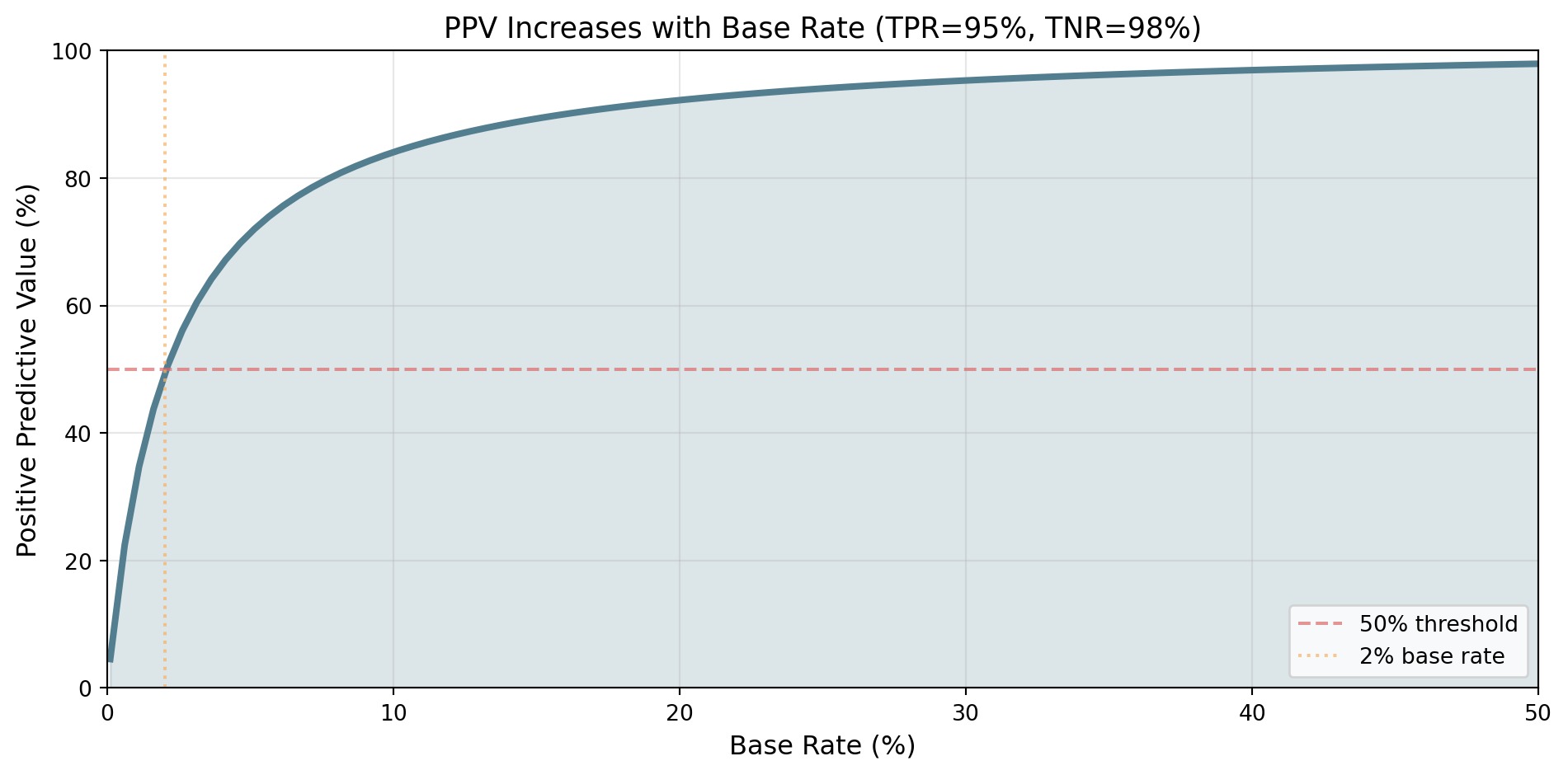 - Base Rate (Prevalence): 2%
