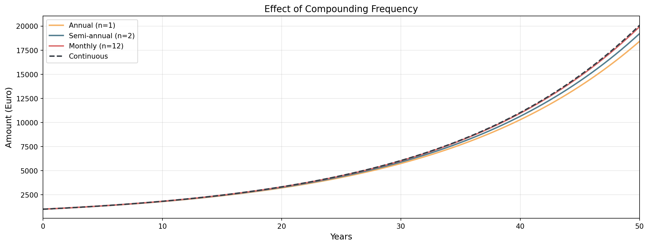 - More frequent compounding increases returns